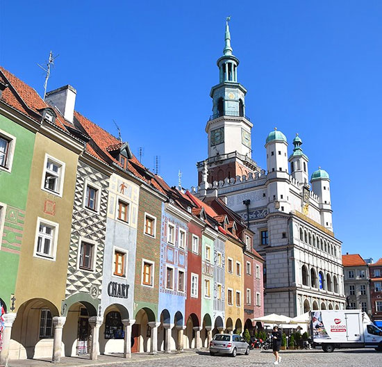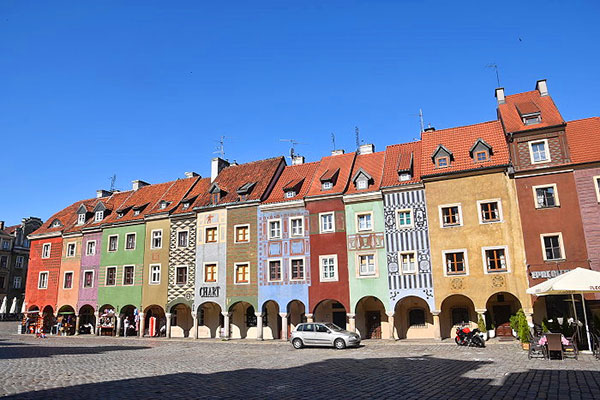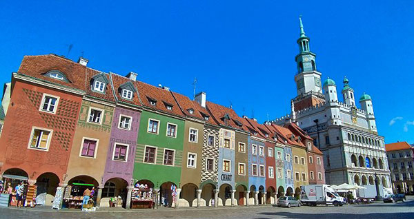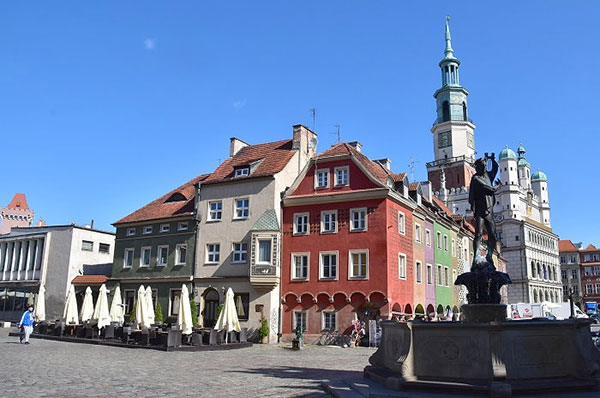 波茲南的老城廣場 (Old Market Square) ,位於瓦爾塔河西岸的老城區中,市政廳及其周邊 (Ratusz and Stary Rynek),為波茲南舊城區的市集廣場,也是波茲南的心臟,這裡不但有神話般的歷史景點,還有令人眼睛為之一亮的五顏六色建築,在中歐最美麗的廣場名列前茅。走覽這個歷史悠久的當地聚會地點,可欣賞周圍的美麗建築及感受熱鬧愉悅的氣氛,是到波玆南必遊之地。 波茲南老城廣場形成於1253年,廣場四邊約141公尺長,是波蘭的第三大市集廣場 (僅次於克拉科夫和樂斯拉夫,日後再介紹),各有3條街道,廣場四角各垂直分出兩條街,臨街均分出16個相等的區塊,廣場四角各有一座洛可可樣式的羅馬神話人物噴泉,分別代表冥后、太陽神、海神和戰神。