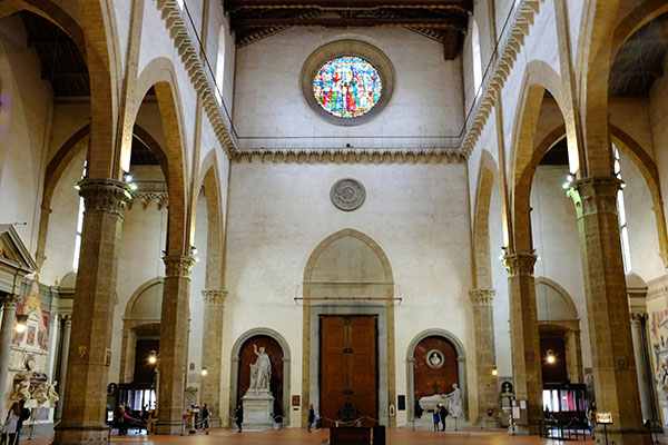 而環繞教堂的便是這些名人之墓。左邊是義大利作曲家Gioachino Rossini (1792年-1868年)之墓,右邊是佛羅斯政治人物Leonardo Bruni (1370年–1444年)之墓。