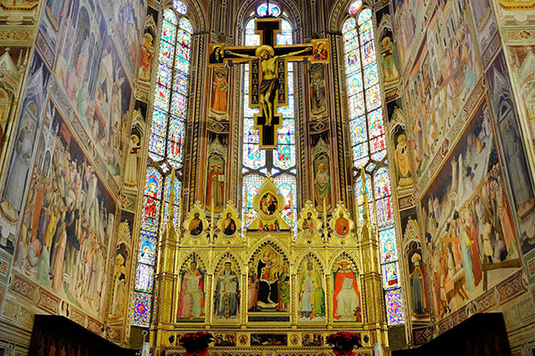佛羅倫斯所在的托斯卡尼Tuscany好山好水好陽光,也孕育出不少的名人。像是以雕塑和建築聞名的米開朗基羅Michelangelo (1475年-1564年),天文地理之父,第一個發表慣性原理和支持哥白尼「日心說」的伽利略Galileo Galilei (1564年-1642年),寫下史詩「神曲」的但丁Dante Alighieri (1265年-1321年)全都是在佛羅倫斯一帶出生的。他們雖然在義大利各處大出鋒頭,但是和中國人一樣百年之後終是要落葉歸根。這間「聖十字殿」Basilica di Santa Croce最出名的便是它的大殿裡被這些「名人帝寶級豪宅」環繞,包括米開朗基羅和伽利略在內的這些名人最後的長眠地通通在此。而這座「聖十字殿」也因為義大利的名人齊聚而被稱為是「義大利的先賢祠」Tempio dellItale Glorie。