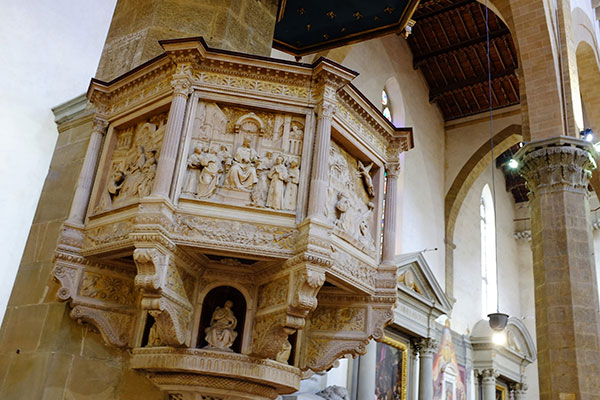 一座Benedetto da Maiano在1472年-1476年之間雕的佈道台。這座佈道台所描述的一樣是聖方濟各亞西西San Francis of Assisi的生活。