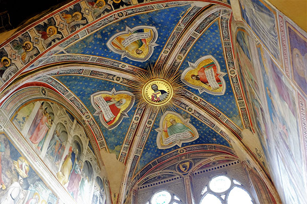 這幅馬爾寇法多Coppo di Marcovaldo在1250年所作的畫是「聖十字殿」裡最老的一幅畫,也是佛羅倫斯畫派Florentine School重要的作品之一。馬爾寇法多也是「聖約翰洗禮堂」Battistero di San Giovanni那座美麗的天頂畫的作者之一。這幅描述聖方濟各亞西西San Francis of Assisi一生的畫就像「聖約翰洗禮堂」的天頂畫一樣,有著濃厚的拜占庭風格。 聖方濟各亞西西是動物的守護神,祂也是舊金山名字的出處。