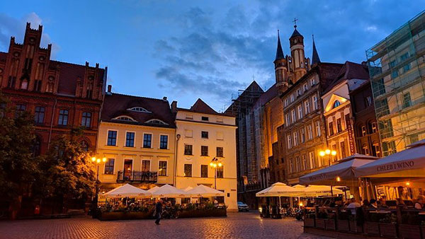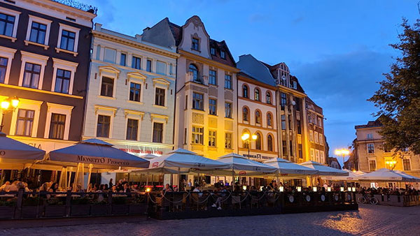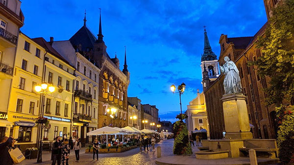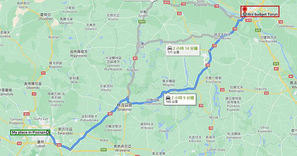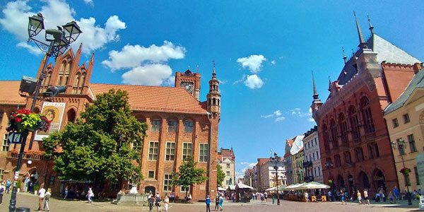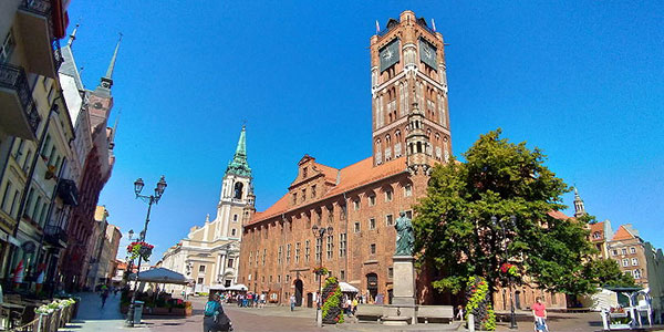 托倫 (Torun) ,西元7-13世紀由斯拉夫人於維斯瓦河 (Wisła) 河岸邊所建立的殖民地,1233年由條頓騎士團所建立。在瓜分波蘭的過程中被劃給普魯士,一戰之後又劃給獨立的波蘭,二戰期間曾被德國佔領。二次世界大戰期間,波蘭許多城鎮被轟炸得幾乎無完土,托倫是極少數能完整保存中古世紀風貌的城區,因保有中古城市的架構和紅磚建築,於1997年名列世界遺產。這座歷史文化名城以獨特的中世紀風貌與保存完好的古蹟而聞名,蘊藏深厚的歷史藝術內涵而成為極富文化研究價值的人文聖地,吸引絡繹不絕慕名而來的遊人。 這天午後時分由波茲南驅車駛往托倫,車程約2個多小時。