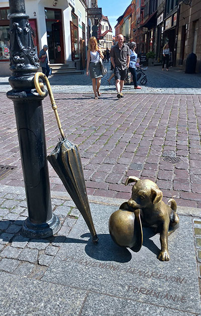 托倫的驢子 (The Toruń Donkey) 銅像,這是一具作為刑罰裝置的驢子,驢背上有一個尖銳長長的凸出物是「刑具」,囚犯會被要求坐在驢身上並接受鞭打。 「Monuments of Filuś」是小狗與雨傘的雕像,取材自波蘭著名的漫畫-Professor Filutek及狗狗 (作者是Zbigniew Lengren,1919-2003) ,描述Filutek教授與他的愛犬Filus形影不離的故事。