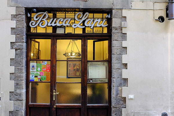 在佛羅倫斯要吃牛排的話這家Buca Lapi是最出名的選項之一。它創立於1880年,是佛羅倫斯最老的餐廳。它目前的老闆是在1995年接手的Luciano Ghinassi,餐廳至今仍然在Palazzo Antinori的地下室酒窖裡。這幢Palazzo Antinori建於1461年至1469年之間,在1506年賣給了Nicolo Antinori。Antinori家族擁有義大利打從1385年就開始經營的出名老酒莊Marchesi Antinori,這幢建築至今也仍然是酒莊所有。餐廳在地下室酒窖的位置也正是它名字的出處,因為Buca這個字在義大利文裡指的正是「洞穴」的意思,而Lapi是佛羅倫斯一帶常見的姓,想來是原老闆的姓。所以這家佛羅倫斯最老的餐廳名字就是「Lapi的洞穴」的意思(咦,怎麼什麼字眼一經我的手聽起來就怪怪der)。