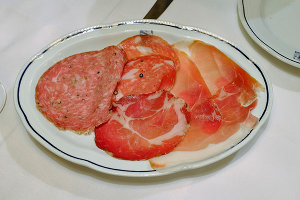 Tuscan salami and prosciutto:叫了一盤托斯卡尼醃肉盤來作前菜。托斯卡尼以各式的醃肉和風乾肉類製品聞名,這個當然不能錯過。今天這一餐真的是從頭到尾一丁點的綠色蔬菜也沒看到。在佛羅倫斯吃肉就是大器,沒在給它怕的啦!