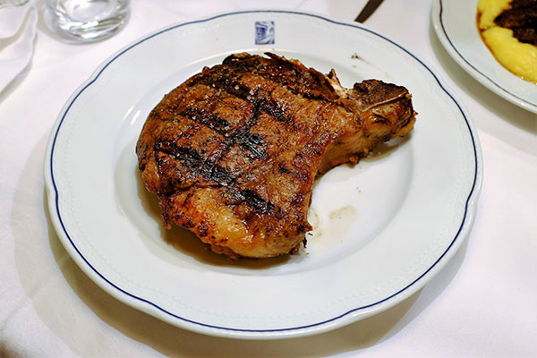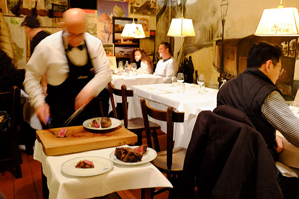 Buca Lapi的菜單上有太多太多托斯卡尼地區的經典老菜,不過到了佛羅倫斯沒吃到它們的大牛排就等於沒來過佛羅倫斯一樣,當然大部份的人來這裡還是為了它們的牛排而來。佛羅倫斯人吃牛排真的是沒有給它在怕,一頓飯吃下來往往就是掉到肉堆裡去了,連個綠葉蔬菜也沒個影。來這裡要量力而為。它們菜單上的菜雖然每一道都很想試,但是「佛羅倫斯牛排」真的是宇宙無敵大。你如果沒有太多人一起幫忙吃的話你也不能太貪心還想點太多其它的東西(泣)。