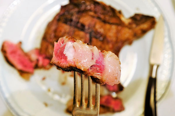佛羅倫斯作為托斯卡尼地區裡的心臟城市,出名的美食也不少。你如果在佛羅倫斯只能選一種東西來吃的話,那最不能錯過的就是這個義大利文叫作Bistecca alla Fiorentina,英文叫作Florentine Steak的「佛羅倫斯牛排」。「佛羅倫斯牛排」通常以Porterhouse大丁骨牛排來作。它不是用煎的,而是很豪邁地在烤架上直接用大火烤。它代表的也正是托斯卡尼飲食的精華:好的食材不需要手續繁瑣的作功,也不需要多餘的醬料和醬汁。一塊好牛排直接用鹽去烤出來都一樣是人間美味。它上菜的時候甚至不需要什麼假惺惺的沙拉配菜,純粹不多不少就是一塊牛排,讓你原汁原味地充分享受托斯卡尼豔陽下的肉食主義精髓。