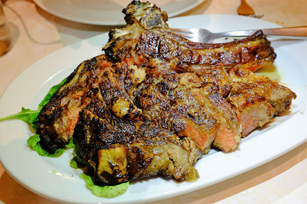 我在今年短短數個月內連續跑了南美洲的阿根廷和歐洲的義大利之後突然有一個最深刻的體悟(得意中),那就是:義大利人絕對是把好吃的牛排推廣到全世界的人!阿根廷是牛肉王國,叫作「parrilla」的牛排館到處都是,布宜諾斯艾利斯的Parrilla Don Julio位居拉丁美洲50大餐廳之一,是所有人到布宜諾斯艾利斯必去的牛排朝聖地。在美國的話,最出名的牛排城市應該非紐約莫屬。布宜諾斯艾利斯和紐約有什麼共同點呢?布宜諾斯艾利斯和紐約的飲食文化都受到義大利飲食文化的影響至深。義大利本土之外義大利移民後裔最多的第二名是布宜諾斯艾利斯,第三名是紐約。那誰是第一名呢:巴西的聖保羅。巴西的Churrasco巴西燒烤還不是一樣在全世界名氣響叮噹。 義大利其實不是每個地方都熱愛牛排,但是你如果到了農牧中心的托斯卡尼地區的話,牛肉絕對是他們飲食文化中最重要的一環,而且他們吃牛肉吃得氣壯山河,豪氣干雲(有人這麼形容吃飯的嗎),對我們食量比較小的亞洲人來說,「佛羅倫斯牛排」Bistecca alla Fiorentina真的只能用「氣勢磅礡」來形容。它通常以Porterhouse大丁骨牛排來作,一般餐廳的牛排都是以一公斤起跳的(驚)。