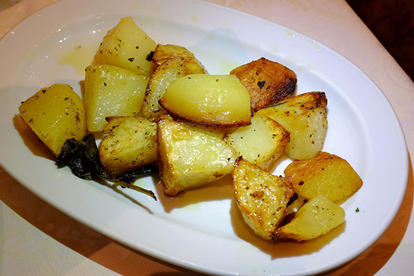Bistecca alla Fiorentina with roast potatoes:主角來了,它們的「佛羅倫斯牛排」沒有分一人份或是兩人份的,只有論斤賣,從一公斤起跳。意思就是說這一公斤的牛排是一人份的。佛羅倫斯人吃起牛排來就是這麼狂。
