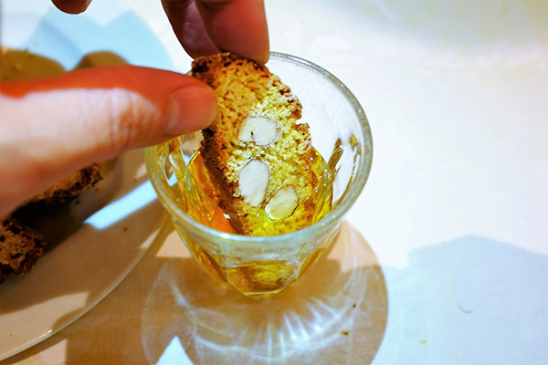 它們在餐後會送這種biscotti杏仁餅乾和餐後甜酒,讓你用餅乾沾甜酒吃。兩個人而已送這麼一大盤biscott杏仁餅乾也是很大方。
