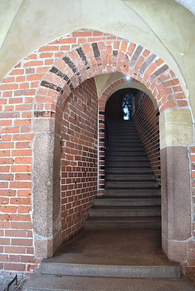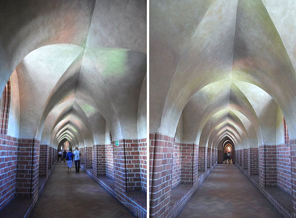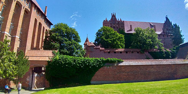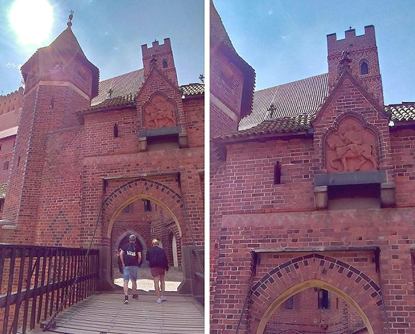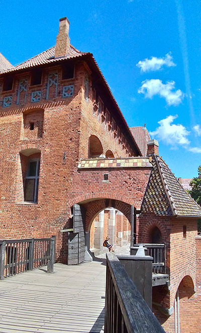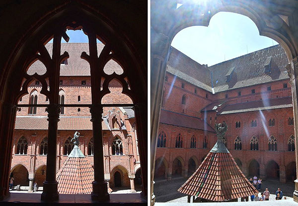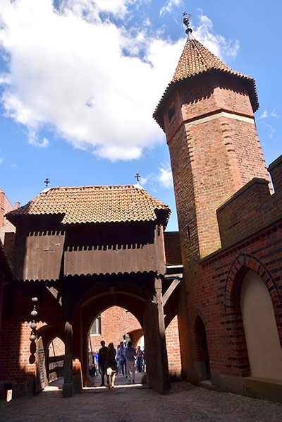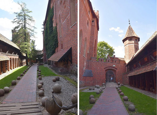 | | 由中城堡(左)與高城堡(右)區之間的出口離開。 |  | 中、高城堡參觀完最後出口。馬爾堡城堡占地 18 公頃,要仔細參觀這座世界上最大的磚造城堡,真得需花上一天時間較有餘裕。