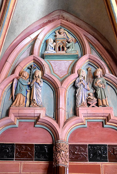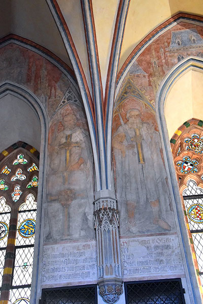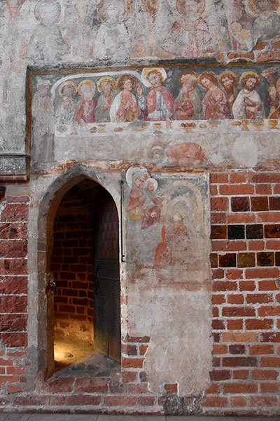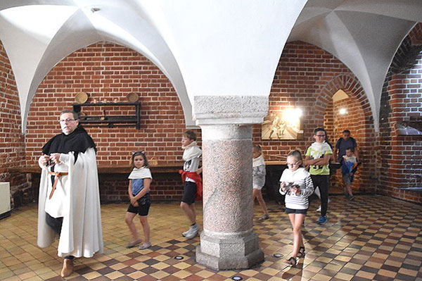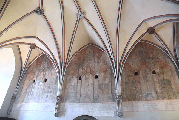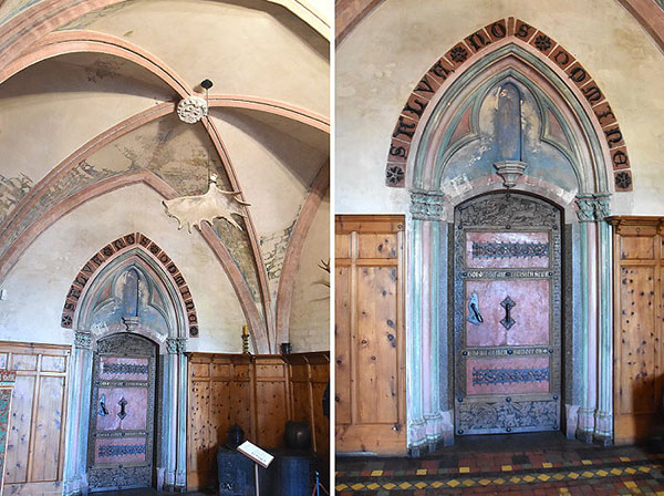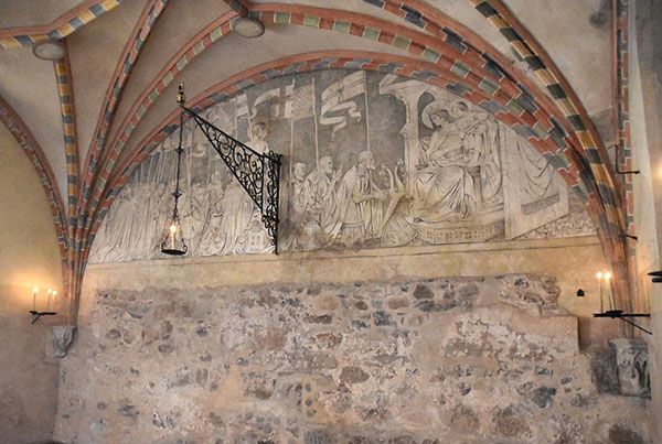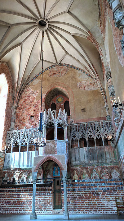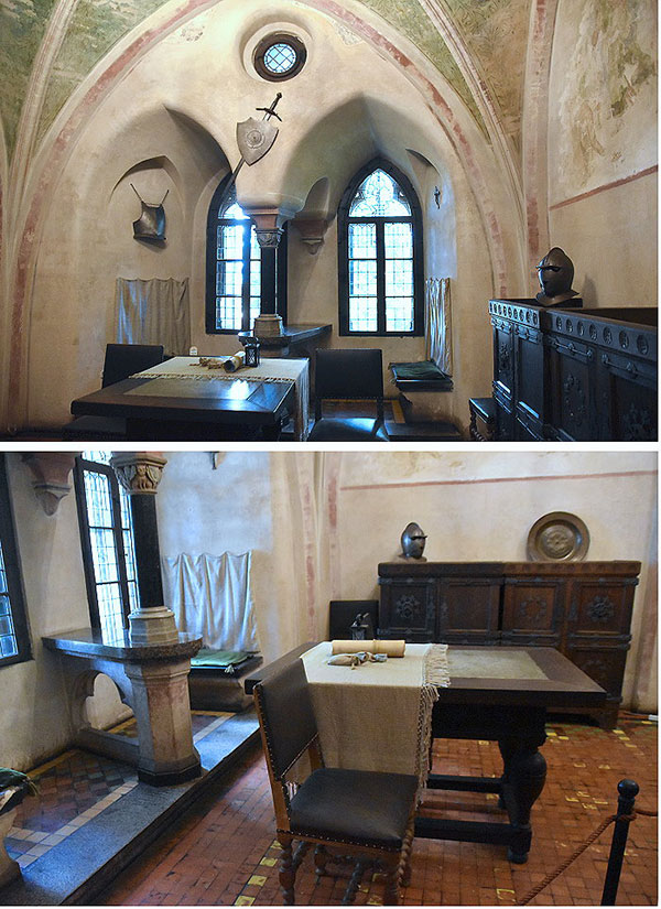 | | 前往禮拜堂的院落。 |  |  | | 禮拜堂入口。 |  | | 美麗的地磚,宛如曼陀羅。 |  | | 牆上的壁畫:東方三博士朝聖圖。 |  | | 來到護城河,仰望高城堡與中城堡連結吊橋。 |  | | 自乾涸的護城河遠眺但斯克塔樓。 |  | | 前往地下室。 |  | 城堡的地下室提供暖氣的火爐。中古世紀時,城堡濕冷陰寒,為了解決保暖問題,便在地下建起兩層燒火爐,底層燒木柴,上層放石頭,並設立排煙口,一旦石頭燒紅便熄火,待煙散去後,將石頭散發出來的熱氣,通過喉管送到各個房間,讓城堡中人取暖(資料引自網路)。