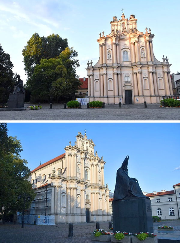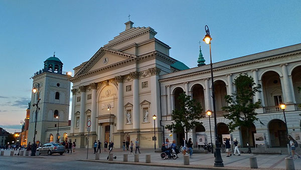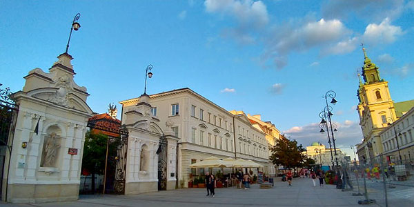 | | 畢蘇斯基廣場上喜見滿月圓。 |  | 沿著克拉科夫郊區街往老城廣場走,左方黃色建築是蕭邦離開華沙之前最後造訪過的Telimena咖啡館。