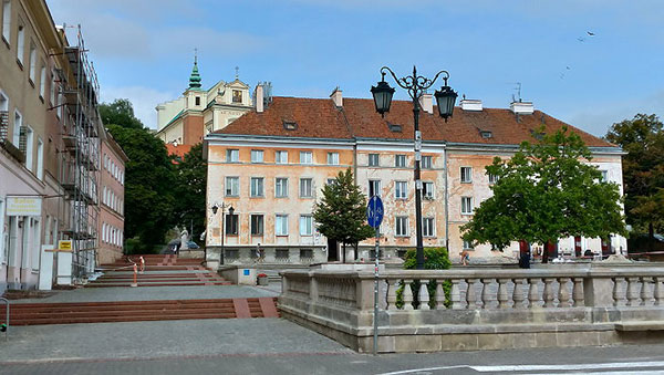 從馬林斯塔特街(ul. Mariensztat)街口拾級而上,就通往華沙城堡廣場,這裡住宅區宛若城下町。