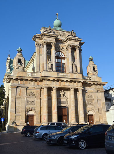 克拉科夫郊區街(Krakowskie Przedmiescie),是位於華沙市中心一條著名的大街,並不在郊區,源於從這條街一直往南,可通往波蘭原來的舊都克拉科夫(Krakow)而命名。克拉科夫郊區街開闢於15世紀,為華沙最古老的大街之一,原是一條貿易線路,屬華沙皇家之路的最北端,連接華沙老城和皇家城堡;17世紀,多座宮殿和莊園開始沿著波蘭新首都的這條主要街道建設;19世紀,克拉科夫郊區街已建有許多巴洛克式和古典主義風格的教堂、宮殿和屋宅;現今華沙多處著名的機構皆在此,被譽為華沙最美的街道。 從瓦津基公園駕車返回在華沙的住處馬林斯塔特街(ul. Mariensztat),已下午時分,把車子停好就步行前往華沙老城中心區。