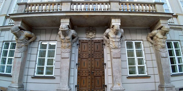 總統府前方廣場中央立有約瑟夫·安東尼·波尼亞托夫斯基(Jozef Antoni Poniatowski,1763年~1813年)騎馬揮刀銅像,是為了紀念華沙軍事指揮官王子波尼亞托夫斯基,也被稱為約瑟夫王子(Prince Joseph)。他1789年起服務軍職,戰功彪炳,曾在拿破崙軍隊中擔任要職,為保衛波蘭獨立主權而鬥爭,並成為由拿破崙扶植的華沙大公國的總司令;1813年在在德國萊比錫戰役中陣亡,在波蘭人心目中是民族英雄!現今這座雕像原作已在二戰中被損毀,現為重製品。 沙克拉科夫郊區街的Hotel Bristol旁小公園內立有博萊斯瓦夫·普魯斯紀念像(Boleslaw Prus Monument)。博萊斯瓦夫·普魯斯(Bolesław Prus,1847~1912年)本名亞歷山大·格沃瓦茨基(AleksanderGłowacki),波蘭小說家,其長篇小說具有豐富深刻的思想內容和比較完美的藝術形式,使普魯斯成為波蘭進步文學的卓越代表,也是當時歐洲最著名的批判現實主義作家之一。 維吉特古教堂(Kościół Wizytek)與紅衣主教斯德望·維辛斯基紀念碑(Monument to Cardinal Stefan Wyszyński)。 維吉特古教堂(Kościół Wizytek)或稱聖母訪親女修會教堂,是一座羅馬天主教教堂。此教堂是華沙具代表性的洛可可式建築風格教堂,教堂開工於1664年,竣工於1761年。凹凸不平的設計和曲面的靈活運用賦予了西立面極強的動感,這座教堂同樣於戰火中倖存,完美屹立至今。 蕭邦生前曾在這個教堂,每周日彌撒時擔任裡頭的風琴手;年輕的蕭邦也因此遇見在彌撒期間詠唱的初戀情人康士坦茨雅·格瓦科夫斯卡(Konstancja G?adkowska);1829年,蕭邦滿懷激情譜寫了F小調《第二鋼琴協奏曲》獻給心上人,可惜這份感情並沒有開花結果。 紅衣主教斯德望·維辛斯基紀念碑(Monument to Cardinal Stefan Wyszyński)於1987年揭幕。 斯德望·維辛斯基(Stefan Wyszy?ski;1901~1981年)為波蘭羅馬天主教樞機,1948年至1981年為華沙及格涅茲諾總主教。在1953年由教宗庇護十二世擢升為越台伯河的聖母大殿之樞機。其後成為格涅茲諾總教區總主教及波蘭首席主教,並被稱為千禧年主教。第二次世界大戰期間曾參與反抗納粹德國的鬥爭,幫助數位猶太人逃脫納粹黨追殺。作為波蘭天主教領導人,維辛斯基在波蘭人中有巨大的影響力,被稱為波蘭的無冕王。1953年9月被關入監服,後遭軟禁,1956年波蘭十月事件後得到釋放。1980年團結工會運動爆發後,維辛斯基曾為波蘭共產黨領導人卡尼亞和團結工會領導人華勒沙間進行調停(資料參見維基百科)。 蒂什基維奇宮(Pałac Tyszkiewiczow),原是立陶宛大公國的元帥Ludwik Tyszkiewicza命令建造的。設計師是揚·克里斯蒂安·卡姆塞策 (Jana Chrystiana Kamsetzera,1753~1795),還動員了許多雕刻家、畫家,被譽為華沙最美麗的新古典主義建築之一。宮殿始於1785年動工,1792年落成,後於二戰期間被燒毀。二戰之後重建,現為華沙大學所使用(↑圖引自維基百科)。 蒂什基維奇宮建築臨街而建,門前有四個勇士扛著陽台的雕塑,是皇家雕塑家安德魯·勒布倫(Andrzeja Le Bruna oraz)和他的助手賈科莫·孔蒂列戈(Giacomo Contieriego)於1787年雕刻的四座阿特拉斯(Atlas)雕像。 阿特拉斯或譯亞特拉斯(Atlas)是希臘神話裡的擎天神,屬於泰坦神族,被宙斯降罪來用雙肩支撐蒼天。古典主義建築風格流行以男性雕像來裝飾建築中的立柱、橋台和支柱,這種支撐性的結構被稱作阿特拉斯。 華沙大學(Uniwersytet Warszawski),大門左側這棟原為切特沃廷斯基-烏魯斯基宮(Czetwertyński-Uruski Palace),原建於1740年代的巴洛克式宮殿建築,現在的建築修建於1844年至1847年。華沙起義期間,烏魯斯基宮被燒毀。1947年後,這座宮殿成為華沙大學的財產,1948-1951年進行重建。華沙大學成立於 1816 年,其實有20多個校區分布於華沙市區,克拉科夫郊區街此處是主校區,包括幾個歷史悠久的宮殿,其中大部分已在19世紀被國有化。 華沙大學華麗的新巴洛克式大門由席勒爾(Stefan Szyller)設計,右側柱子上有一個小小的黑色木牌,上面寫著「弗里德里克·蕭邦,曾經於1817年至1827年在華沙大學的校園中學習和生活」。 華沙大學校門上的鑄鐵裝飾是校徽圖案,為一隻古老頭戴皇冠的波蘭鷹,校徽上的五顆星星分別代表創校當時的五大學科系:神學、法學、醫學、哲學及自由藝術。 查普斯基宮(Pałac Czapskich),就在華沙大學的正對面,如今是華沙美術學院(AcademyofFineArtsinWarsaw)所在地。 聖十字教堂(Holy Cross Church),無疑是克拉科夫郊區街上最受矚目的建築,除了是它的兩座鐘樓,在華沙即便是走了很遠也能清楚地看到;更因為教堂裡安葬著樂聖蕭邦的心臟而名聞遐邇。 聖十字教堂建於1679~1696年,由將教義引進波蘭的路易絲瑪麗(Marie Louise)皇后命意大利著名建築師貝洛蒂(Jozef Szymon Bellotti)設計建成,結合了新巴洛克風格和文藝復興風格;中央高聳的雙塔則完成於十八世紀中期,正面由內崁式的愛奧尼亞式柱廊支撐,壁龕分別有聖彼得及聖保羅雕像,雕像出自揚·耶日·普勒斯(Jan Jerzy Plersz)之手;而教堂左右兩側的方塔上巴洛克風的圓形頂飾,則是 18 世紀時,建築師尤瑟夫•丰塔納 (Jozef Fontana) 加上的。在華沙起義期間教堂毀損嚴重,今日世人所見的建築外觀,幾乎都是戰後所重建:1945開始復建,1980年9月21日落成。 教堂正面,可以說是經典標誌,是一個背著十字架的基督雕像(Statue of Christ Bearing His Cross)。基座上刻著「SURSUM CORDA」」的拉丁語,其含義是「升起你的心」鼓起勇氣來之意,傳達波蘭人在俄羅斯分區統治下,要振作精神