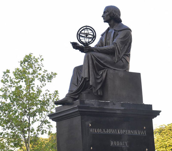 弔念卡廷大屠殺(Zbrodnia Katyńska)的禮拜堂。龕內置有哀傷的聖母懷抱聖子雕像,牆上的石碑、鐵鍊上寫滿了人名,但上面卻是同一個年份「1940」,當年蘇聯秘密警察機關內務人民委員部在蘇聯共產黨中央政治局的批准下,於1940年4月至5月間對被俘的波蘭戰俘、知識分子、警察及其他公務員進行的有組織的大屠殺。 聖十字教堂壁面、柱子上都有波蘭對國家有的名人銘誌,包括曾榮獲諾貝爾文學獎的波蘭作家瓦迪斯瓦夫·雷蒙特 (Władysław Reymonta,1868~1925) 和波蘭文學哲學領銜地位的作家博萊斯瓦夫·普魯斯(Bolesław Prus,1847~1912)。 教堂內有一些重量級名人的紀念碑和陵墓,例如:但丁、米開朗基羅、伽利略、馬基維利、羅西尼等,這些傑出的人士在此共享榮耀。碑繁不及備拍,很難一一找全,就隨機po四座代表。 聖十字教堂旁邊有一個哥白尼紀念碑廣場(Copernicus Monument?Palac ),廣場上有哥白尼紀念碑(Copernicus Monument),其後為波蘭科學院 (Polish Academy of Sciences) 總部。 哥白尼雕像廣場的地面,有用石磚以哥白尼為中心舖設出一個天體運行論的太陽系模型軌道圖。 哥白尼紀念碑高2.8公尺,哥白尼身穿長袍,一手拿著繪製指南針,另一手拿著以太陽作天體中心的渾天儀,為丹麥雕塑家巴特爾·托瓦爾森(Bertel Thorvaldsen)之作品。