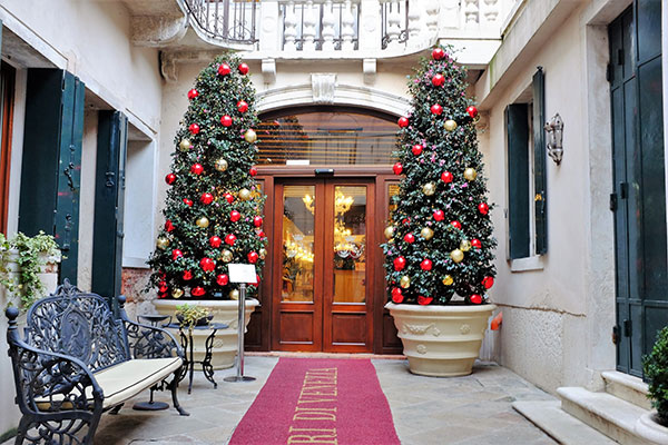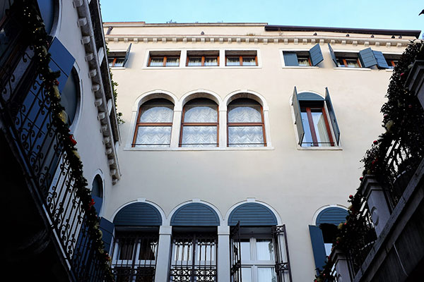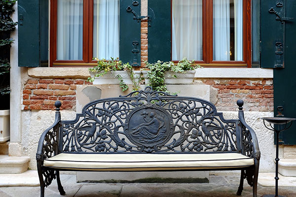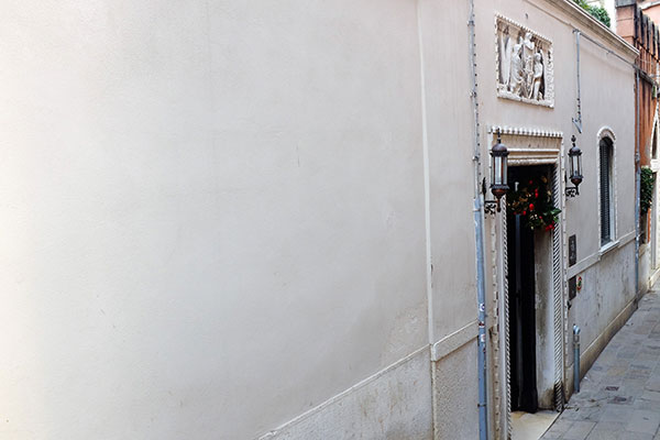 一側就靠著這條運河,不時還有貢多拉默默地飄過去。 進門後有一個蠻漂亮的小院子。 院子裡的一個角落。