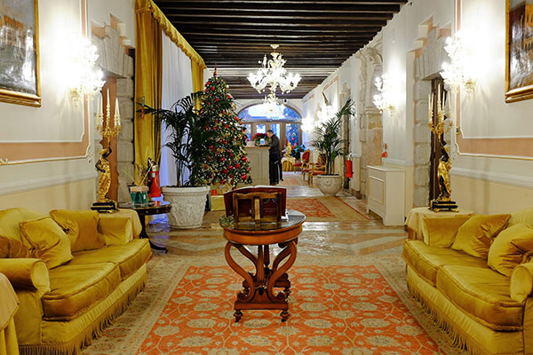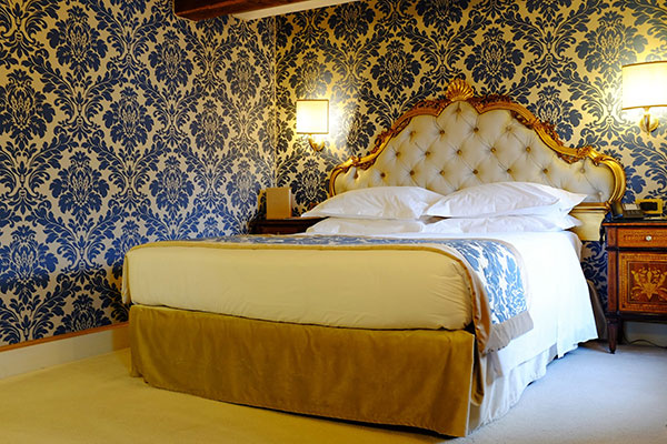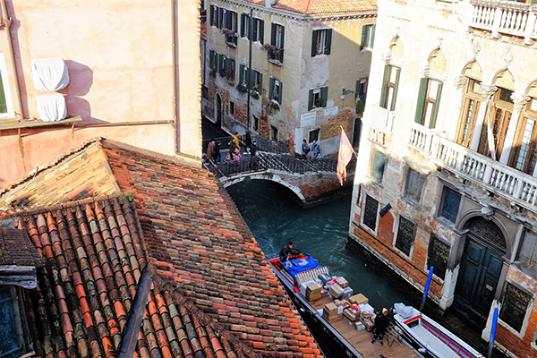 這次在威尼斯挑的旅館是這家Hotel ai Cavalieri di Venezia。這家由18世紀的老宅子改造的旅館是威尼斯的精品旅館之一。它前頭有座漂亮的小庭院,後頭靠著運河,有自己的碼頭(這在威尼斯還蠻平常的)。旅館的裝潢是很精緻宮廷古典風,也很漂亮雅致。但是更最重要的是它離「里阿爾托橋」Ponte di Rialto的水上巴士站不遠。在威尼斯選一家離水上巴士站近一點的旅館很重要,因為在威尼斯的主要的城市中心區域裡完全沒有車子,全都靠水路運輸(沒錯,它們運蔬菜運貨物也是通通是靠船隻)。除非你是家財萬貫到可以一天到晚坐水上計程車的人(真的很貴,死老百姓想都不要想),否則出出入入全靠水上巴士vaporetto和11號公車(你的兩條腿啦)。大家現在出門旅行大多有行李箱要拖,而在威尼斯你千萬不要只看地圖上的距離而高估了你拖行李箱的能力。因為相信我,你每要過一座橋就是你人生中的一個坎,而威尼斯總共有177條運河和409座橋。找家離水上巴士站近一點的旅館你才不用跟自己過不去。