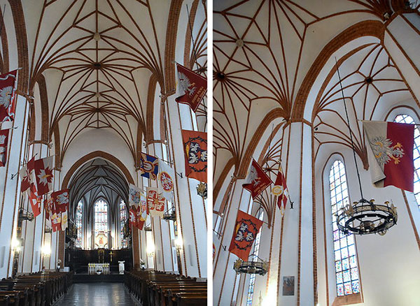 | | 主祭壇與僧侶座。 |  | | 主祭壇的聖母抱子像與主教座位。 |  | | 禮拜堂。 |  | 這座教堂不只是華沙天主教徒的禮拜地點,也是聆聽宗教音樂的重要場所。教堂經常舉辦管風琴獨奏會,去的時候門口就有公演海報。 耶穌會教堂,也稱格雷斯聖殿教堂,為華沙風格主義教堂的代表作,由建築師Jan Frankiewicz始建於1609∼1626年期間;1944年被摧毀後根據1939年原有之記錄,於1950年至1957年進行重建,工程持續到1974年。其粉紅色和白色的外牆,是其最初建在17世紀時裝飾的風格。 耶穌會教堂風格特殊的大門,被稱為「天使之門」,大門上有3尊現代風格的人物半身塑像,不知意涵為何。 主祭壇的聖母像後方牆上掛滿各式各樣項鍊,應該是祈求聖母的庇佑後再拿回去戴吧!  | | 管風琴。 |  | 老城區市集廣場 (Old Town Market Place),面積為90公尺×73公尺,建於 13 世紀末~14 世紀初,是華沙歷史最悠久的地區之一。廣場四周環繞著櫛比鱗次的五彩繽紛屋樓與露天咖啡座,熱鬧擾攘、遊客如織,為華沙老城的核心,必遊之景點。 廣場四周羅列 17 至 18 世紀樣式的建築,這些建築在1607年大火以前是哥德式建築,後改建為文藝復興式。華沙起義後曾被德國軍隊有系統地摧毀,二戰結束後重建於1948年到1953年悉心重建,力圖回復此地在文藝復興時期時風華極盛的原貌;屋牆上都被刷上了黃色、紅色、褐色、白色、綠色等各種顏彩,窗戶邊上都繪有神話故事和四季風景,再加上各種傳統圖案的造型,洋溢復古而典雅的風情。