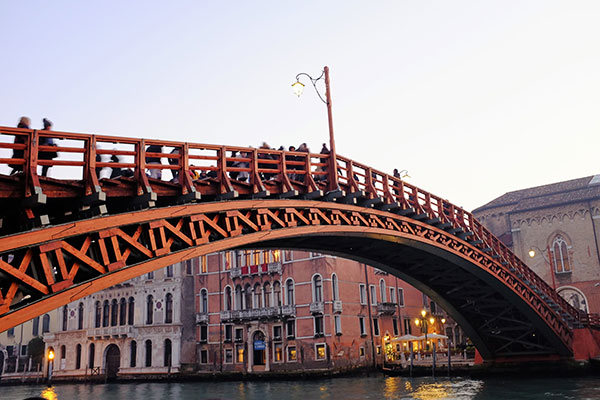 這座在1933年由Eugenio Miozzi設計重建的木造結構橋相當的有特色。 「學院橋」因為臨近「大運河」的出海口,景色開闊,視野也很好。