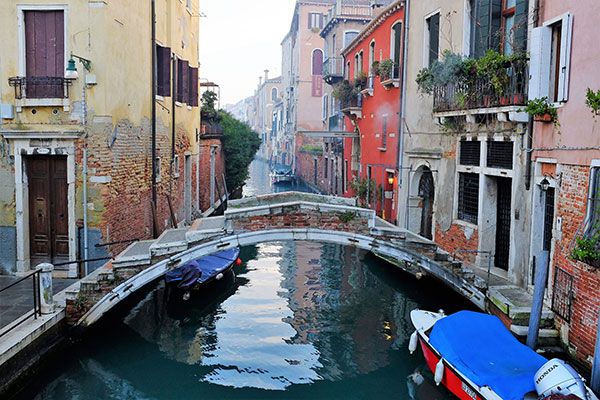 威尼斯這個「水都」的頭銜也不是浪得虛名的。這座建立在潟湖上的城市境內水道縱橫。它據說總共有177條運河和409座橋,過橋成了威尼斯日常生活的一部份。威尼斯的城區內是沒有車輛的,貨物從水路運送到特定的碼頭之後全靠人力拉著特製的推車在這些橋的階梯上上下下,可見這座城市的運作成本有多高。