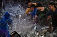 | 作者介紹|陳志東 獨立記者,專注於台灣休閒農業及食材深度報導。著有《休閒農業走過20年》、《農村廚房尋味之旅》、《嘉南平原的心跳聲》等書。 秋天是虱目魚上岸的季節。這個已經在台灣活跳了300多年的國民魚種,雖然一年四季都能吃到、每天都有魚池會捕撈,但因為它怕冷,如果冬季寒流太強,仍免不了意外涷斃或成長緩慢耗費飼料,因此多數漁民都選擇深秋之前就請虱目魚上岸,而看虱目魚上岸,是種腎上腺素會跟著飆升的體驗。 虱目魚如果是野生,等5歲性成熟後,體型最大可達1.8公尺,是那種身高可以去打籃球的大魚,而養殖虱目魚通常是1歲40公分左右就上岸。雖然只有40公分,但它們體型渾圓結實,渾身都是力氣,當魚網靠近受到驚嚇,它們會如飛魚般起飛,漁民在水中不小心被撞到就會瘀青出血。為了避免它們亂竄導致漁民受傷或自身魚肉淤血影響肉質,在網撈同時,漁民通常會配合電擊將其電暈。最震撼的畫面,就是當電擊的竹竿入水之前,這時已經困在網中的虱目魚會如萬馬奔騰非常壯觀,讓人看得腎上腺素飆升。但在這樣場景中,也不免讓人思考電擊是讓它們暈眩解脫,還是增加痛苦?它們會痛嗎?電擊那一下會導致肉質緊縮嗎?而不電擊會又會延長它們多少的痛苦時間?關於虱目魚肉質、動物福利、漁民心態、市場價值等等衝突,這時也往往會在大家心中萬馬奔騰。我們對於該如何正確對待水生動物,瞭解得還是太少。 | | | ▲虱目魚上岸如萬馬奔騰,被撞到會瘀青,魚肉本身肉質也會受影響。 | | | | ▲剛上岸的虱目魚光亮漂亮如牛奶般細嫩,難怪虱目魚英文名Milk Fish牛奶魚。 | | | | ▲虱目魚魚鱗很硬,因此上岸後,有些會依訂購者需求立即以電動機器去鱗,去鱗畫面很療癒,而去鱗工人也很快全身沾滿魚鱗。 | 不像烏魚、香魚都是清晨天未亮就要抓,虱目魚通常是清晨、下午或晚上,不同時段都可以抓。台南安平漁光島虱目魚主題館的盧靖穎館長表示,這稱之為「早流」、「晡流」與「暝流」。 三個不同撈魚時段 送往台灣各地 通常「早流」清晨抓魚是為了將上岸的魚都立即送進加工廠,或許取魚肚冷凍包裝,或許做成虱目魚香腸、虱目魚丸等等,清晨打撈後送進加工廠裡就能當天完工,或是送往花蓮、台東等東部交通較遙遠地區。 晡流的「晡」代表閩南語下午之意,這時段撈魚主要是送往北部,處理好之後剛好趕上清晨早市開賣。「暝流」通常是傍晚6點開始準備作業,忙到晚上10點多或更晚,撈起來的魚主要都供給台南、高雄等南部菜市場與小吃店使用。這時段南台灣的陽光不再炙熱,魚群準備入睡傻呼呼,更重要是這時打撈起來刮去魚鱗處理完成並運送,大概半夜時段就能把虱目魚送到每一戶訂購者的攤位上,等到清晨,虱目魚肚粥、虱目魚皮粥、乾煎魚腸、滷虱目魚頭等美味,就一碗一碗冒著煙,溫暖了南台灣人的胃腸。 | | | ▲同一池的虱目魚,同時放養,卻會因個體體質因素,大小差很多。 | 弄魚與消肚 造就美味煎魚腸 通常「暝流」晚上撈的魚,漁民會提前一天停止餵魚,讓魚腸胃淨空,等當天下午則會「弄魚」,通常是以木板拍打水面嚇魚,讓魚嚇到排淨腸內廢棄物,稱為「消肚」,透過這樣的飢餓與驚嚇,可確保魚腸的潔淨。虱目魚為了奉獻美味,過程還真是多災多難。 從1694年的台灣府志記載虱目魚以來,這一尾已經陪了台灣300多年的魚,近年因為光電搶地導致面積不斷縮減,魚價不停飆高,而我們吃了它300多年,卻多數人連它怎麼養、怎麼撈、怎麼友善對待都不太清楚。台灣休閒農業發展協會的「農遊超市」也因此推出「虱目魚上岸」行程,計畫未來每年秋季都能帶領遊客前往觀賞虱目魚撈捕作業,讓這尾台灣國民魚種能有機會被更認識,除了感受那萬馬奔騰的震撼,也期待可以思考如何更善待虱目魚。 | | | ▲位於台南安平漁光島的虱目魚主題館,是認識虱目魚的極佳地點。 | | | | ▲「虱目魚上岸」行程, 會帶領遊客走訪漁光島魚塭景致並帶領認識虱目 | | | | ▲「虱目魚上岸」行程,會安排品嚐頭比臉大的大尾虱目魚,以及這種小如手掌的奶幼虱目魚,或是深池與淺坪不同養殖方式的虱目魚,讓大家感受其肉質差異。 | 欲見更多內容,請見No.393《行遍天下》雜誌2025年11月號。 好吃好玩消息,請上《行遍天下》 → https://travelcom.pse.is/edm-FB 體驗美好旅遊休閒生活,立即訂閱《行遍天下》雜誌 →https://travelcom.pse.is/udn-paper |
