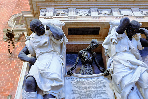 紀念碑上還有四個巨大的摩爾人Moors扛著門楣,這種義大利版的「憨番扛廟角」從當今的眼光來看還真的是不合時宜。