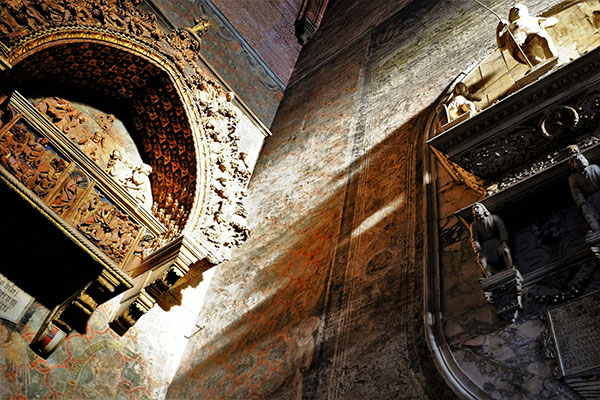 這座唱詩台分了三層,總共可以容納124人,雕刻得相當精緻。
